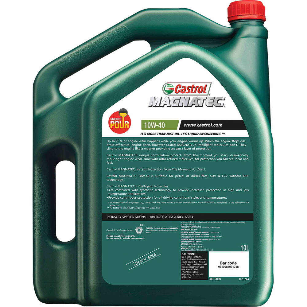 Product Info Castrol MAGNATEC 10W-40 is a semi synthetic engine oil which protects and cleanses your engine with Castrol Magnatec intelligent molecules designed to cling to your engine like a magnet, providing an extra layer of protection. Castrol Magnatec’s unique formulation protects from the moment you turn the key, dramatically reducing* engine wear. Now with…
