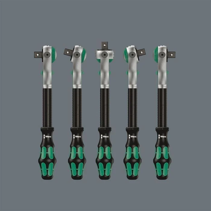 This set combines 5 ratchet types in one tool! The rotation-symmetric design of the Kraftform handle and the free-turning sleeve reinforce the ease of twist at high working speeds. This ratchet makes it possible to work in very confined and difficult-to-access areas with enhanced hand clearance.